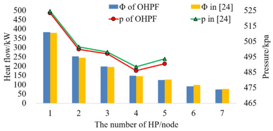 Figure 6. The heat flow and pressure distribution of DHS in sample system 1.