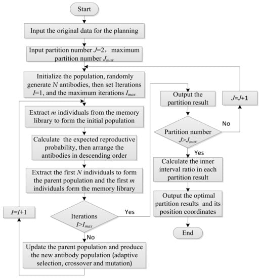 A flow chart of the integrated energy supply centre’s location optimization based on the improved adaptive evolutionary immune algorithm is shown in Figure 3.
