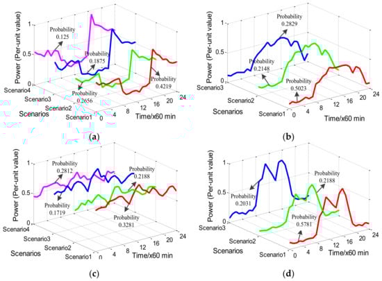 Therefore, taking a typical timing situation as an example, assuming that the obtained clustering centres’ number is k and the objects’ number contained in each cluster are n1, n2, ..., ns, ..., nk, the probability of the sth scenario can be given by Equation (5).