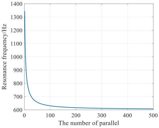 The relationship between the resonance frequency of the inverter grid-connected and the number of parallel obtained by Equation (6), is shown in Figure 4.