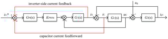Capacitor current feedforward and inverter-side current feedback control block diagram.
