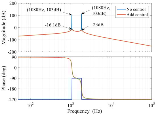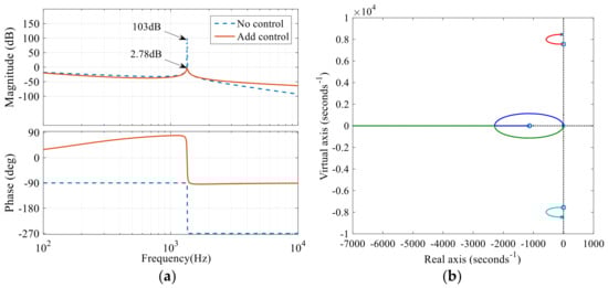 In Figure 6a, before and after the control strategy is added, the peak value of the current resonance point decreases from 103 dB to −2.78 dB, indicating that the capacitor current feedforward and inverter-side current feedback control strategy can effectively suppress the resonance. In Figure 6b, the root locus of the system is all distributed in the left half plane of the complex plane, which proves that this control method can ensure the stable operation of the system.