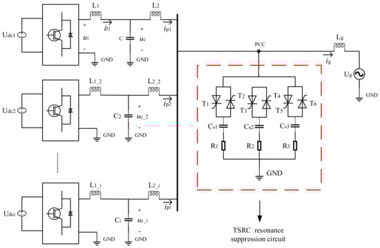 TSRC resonance suppression schematic of grid-connected inverter cluster.