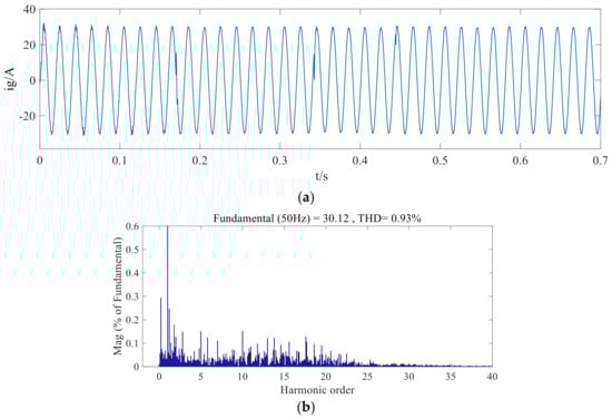 (a) Grid-connected current waveform; (b) Grid-connected current harmonic analysis.