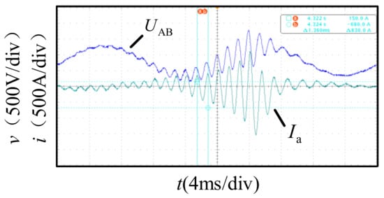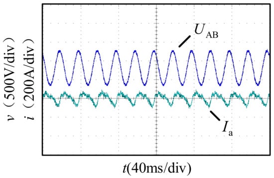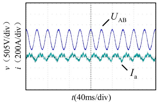 After adding the control strategy, the inverter is started. The resonance is suppressed, the distortion of grid voltage waveform disappear and the oscillation of the current waveform is obviously reduced. The inverter works normally; the line voltage and A-phase current waveforms are shown in Figure 18.