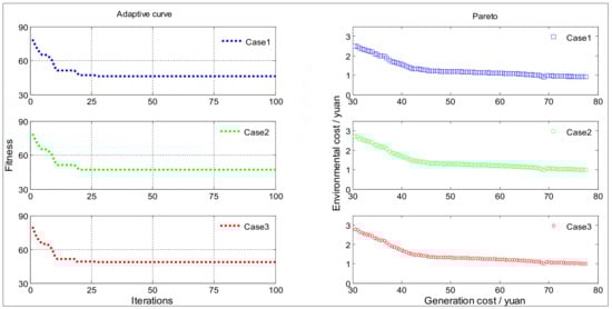 According to the objective function presented in this paper and the three scenarios set by the work presented, we can get the cost composition of the system under different operating conditions. For the multi-energy complementary microgrid system established in this paper, the operating cost of the system is mainly composed of power generation cost and environmental cost. The cost of power generation mainly includes the operation and maintenance cost of the generating unit and the cost of fuel. The environmental cost is mainly the environmental cost due to the discharge of the pollutants. Table 5 shows system cost structure under different operating conditions.