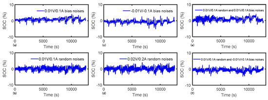 The battery management system (BMS) is responsible for monitoring power batteries’ complete information to guarantee the electric vehicle (EV) performance, because the batteries’ parameters such as current, voltage, resistance, and temperature are of importance, indicating the safety and normality of the power system [1]. State of Charge (SOC) has an undoubted critical position for BMS to realize management functions, and it indicates the remaining energy, whose accuracy is of great significance for service safety and life of batteries [2,3]. Nevertheless, the limitation on the progress of BMS is mostly due to SOC unmeasurable and dynamic properties that are similar to the characteristics of the batteries, which are influenced by various factors [4], such as discharge rate, ambient temperature, battery degeneration, and external disturbance. Therefore, the study of high accuracy SOC estimation methods is vitally important using measureable variables, such as current, voltage and temperature.