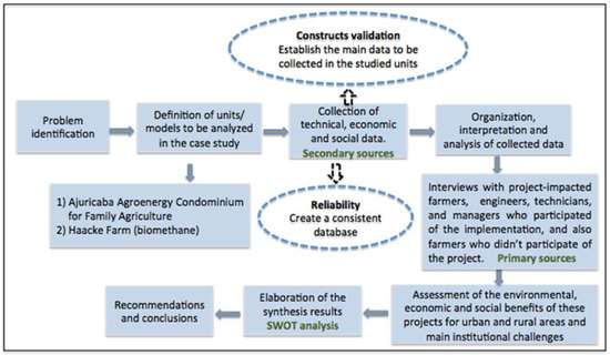 Qualitative and quantitative analyses were based on primary and secondary data sources. Data were collected from Itaipu Binational, CIBiogas and CIH’s databases and thereafter primary data were collected through interviews, data collection, and on-site visits, as summarized in Figure 1.