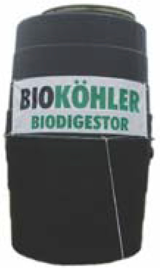 To overcome the limitation of the anaerobic digestion of dairy cow manure in western Parana, an alternative low-cost reactor was designed and patented. In this concept, a small reactor made of fiberglass with working volume of 5 m³ up to 50 m³ has been used by small scale farmers with low manure production. As half of the chamber is placed under the ground level, it is possible to achieve acceptable temperature control and, at the same time, accumulate the biogas produced in the upper part of the chamber, located above the ground level (Figure 4). With this innovation, the biogas production of dairy cow manure became more feasible using the small amounts of manure produced on each farm.