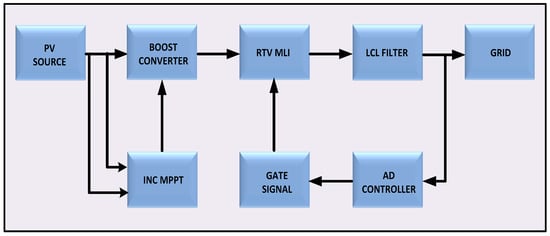 Figure 1 shows system topology of grid interfaced reverse voltage topology MLI with LCL filter. This topology comprises PV Panel, MPPT aided boost converter and a multilevel inverter unit that facilitates single-phase seven-level stepped output and LCL filter connecting the inverter output to the grid and controller to regulate the inverter.