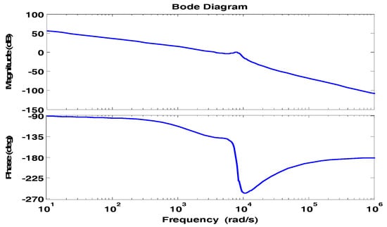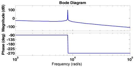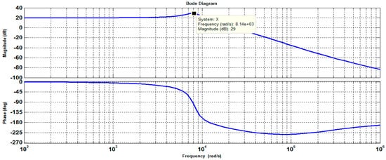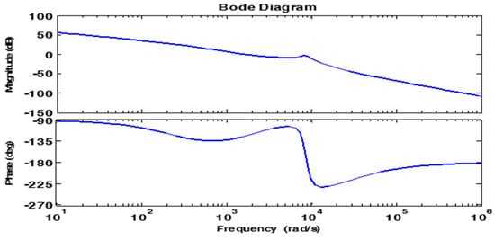 Bode plot is drawn with PR-D controller fed LCL filter (Figure 19), and we can distinguish that the resonant peak is reduced, which is observed between −0.15 and 0 db at 1305 Hz. This shows the improved performance of the system with PR controller when compared to the two degrees of freedom controller and grid injected feedback current controllers.