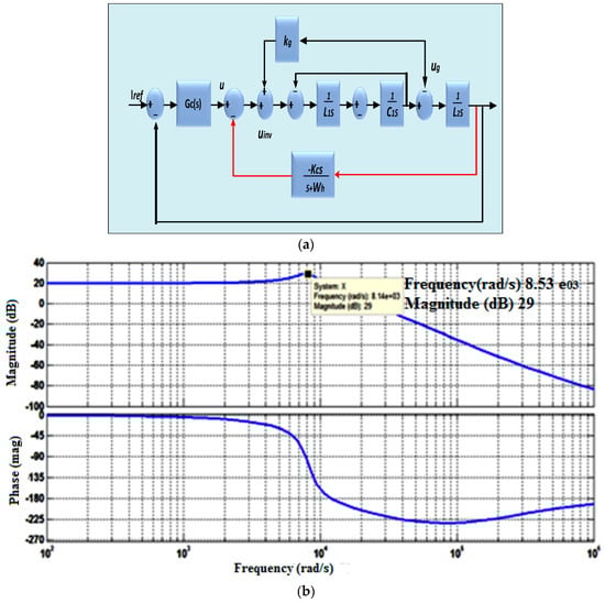 The block diagram of injected grid current feedback controller [] is shown in Figure 14a and the relevant frequency response is shown in Figure 14b, where kg is the factor of the feed forward grid voltage (here, kg = 1), iref is the reference current and Gc(s) is the gain of the current regulator, which is used to track iref.
