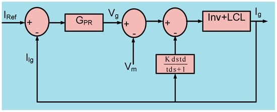 PV MLI with grid interface should comply with the grid standard and therefore filters selection and design is critical [,]. The selection of the LCL filter is the best choice since it has advanced aspects [] in comparison with other filters. PV as a source injects current into the grid once the inverter output is synchronized with grid with respect to voltage and frequency, and therefore it is vital that the profile of the current is sinusoidal to lessen the harmonic impact. The typical PI controller based structure may be a weak candidate for mitigating the current harmonic issue due to the bandwidth limitation [,,]. To augment the bandwidth a high proportional controller is always preferred but the major hurdle witnessed here is that the system stability may become unwieldy if the LC tunes resonance for a particular ripple frequency. Therefore, control logic and damping methods become crucial parameters in grid synchronized system. Although some research addressed PR controller in PV grid interfaces, less research addressed PV grid interfaces through MLI having PR controller. This study had that unique feature and, in this work, PR-D controller was considered by which the damping was done up to−0.16db, thus exhibiting improved operation. The proposed method was duly compared with its similar counterpart 2DOF active damping. The detailed stability analysis of the proposed structure clearly envisaged the merits of the proposed system. The paper is as follows. Section 2 deals with PV modeling with MPPT scheme and the grid interactive MI. The proposed system is described and it is compared with other prevailing techniques in Section 3.The concluding remarks are presented in Section 4.