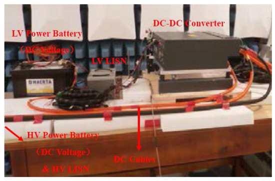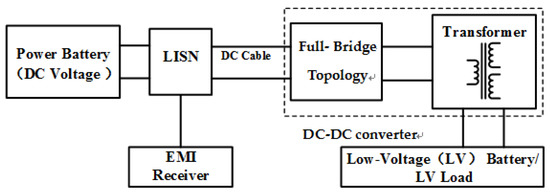 - Gao, X.; Su, D.; Li, Y. Study on electromagnetic interference of DC/DC converter used in the EV. In Proceedings of the 2015 Asia-Pacific Symposium on Electromagnetic Compatibility (APEMC), Taipei, Taiwan, 26–29 May 2015; pp. 258–261. [Google Scholar]