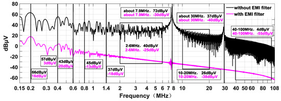 4.3. Mitigation Effect and Stability Analysis of the High Frequency EMI Filter
