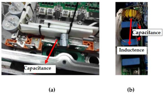 - Zhai, L.; Lin, L.; Zhang, X.; Song, C. The Effect of Distributed Parameters on Conducted EMI from DC-Fed Motor Drive Systems in Electric Vehicles. Energies 2016, 10, 1. [Google Scholar] [CrossRef]