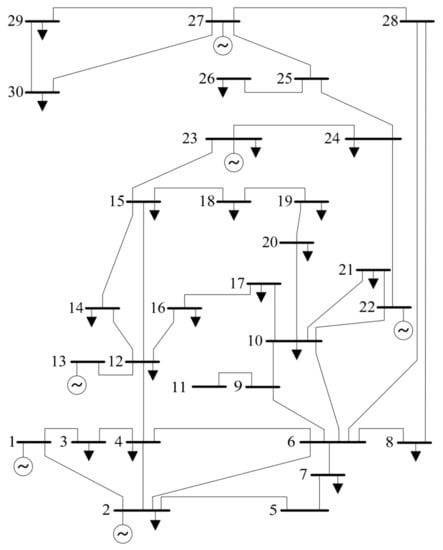- Single Line Diagram of the IEEE 30-Bus Test System. Available online: http://een.iust.ac.ir/profs/Jadid/SCPM.pdf (accessed on 17 January 2018).
