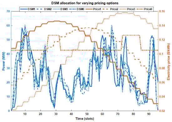 Price1 (DSM1), Price2 (DSM2), Price3 (DSM3) and Price0 (DSM0) DR dispatch profile.