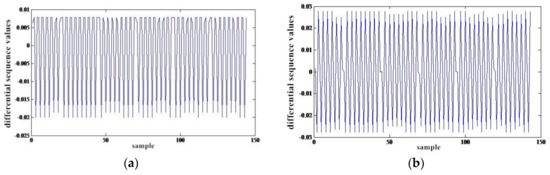 First- and second-order difference results of the original sequence. (a) First-order differential sequence; (b) Second-order differential sequence.