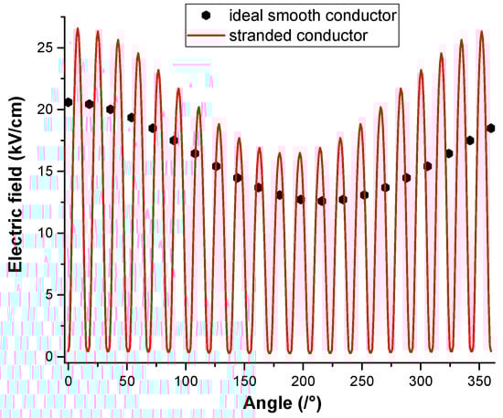 Comparative analysis of surface electric field on a sub-conductor: smooth vs. stranded conductors.