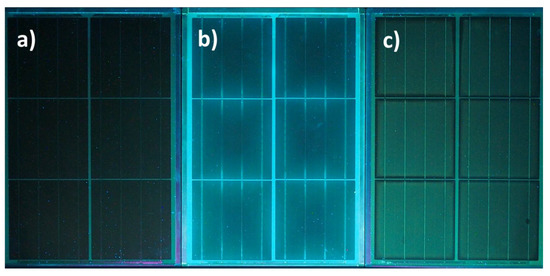 - Morlier, A.; Siebert, M.; Kunze, I.; Mathiak, G.; Köntges, M. Detecting photovoltaic module failures in the field during daytime with ultraviolet fluorescence module inspection. In Proceedings of the 44th IEEE PVSC, Washington, DC, USA, 25–30 June 2017. [Google Scholar]