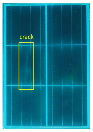 - Köntges, M.; Kunze, I.; Kajari-Schröder, S.; Breitenmoser, X.; Bjørneklett, B. Quantifying the Risk of Power Loss in PV Modules Due to Micro Cracks. In Proceedings of the 25th European PV SEC, 4BO.9.4, Valencia, Spain, 6–10 September 2010; pp. 3745–3752. [Google Scholar] [CrossRef]