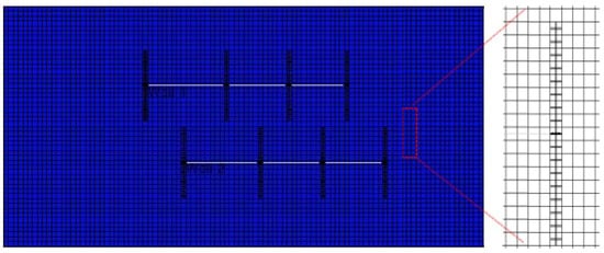 At present, there is no analytical or semi-analytic model for multi-well interference. Therefore, we choose commercial software to verify the accuracy of our model, CMG-2010 (Computer Management Group Ltd., Calgary, AB, Canada), and the top view of WIPS scheme is shown in Figure 5. The numerical simulation model consists of two horizontal wells. Each horizontal well contains four hydraulic fractures with a fracture spacing of 250 m. Double klinkenberg permeability- logarithmic spacing-local grid refinement (DK-LS-LGR) technology was used to characterize hydraulic fractures system. To avoid the same pressure type curve between the two horizontal wells, the oil ratio was assumed to 1:4. As shown in Figure 6, we can get a good fit between the numerical simulation and the theoretical model, which shows that the new model is reliable.