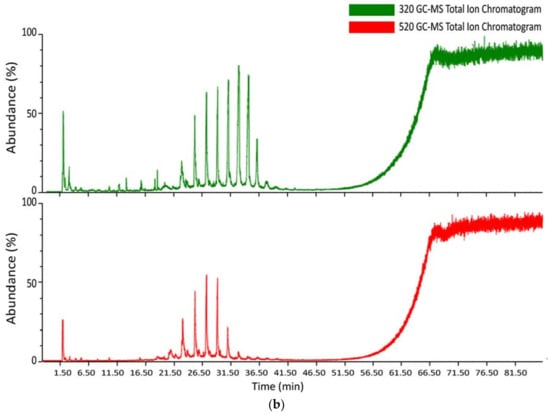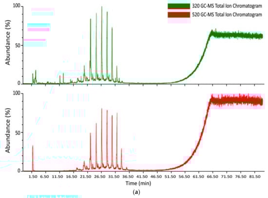 (a) Sawdust TGA-GC-MS results; (b) Compost TGA-GC-MS results.