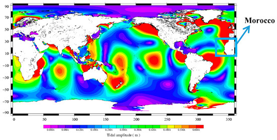 Morocco presents a high potential for renewable marine energies, and some studies have analyzed the availability of energies due to wind [28]. Some studies assessed the wave energy resource in the whole Mediterranean. Thus [29] found at the Mediterranean Coast of Morocco wave energy powers between 2 kW/m and 6 kW/m, while [30] estimated a mean wave power of 6.3 kW/m at a point in the Moroccan Mediterranean. The results obtained by Sierra et al. [6] from the average power of the waves is important (up to 30 kW/m with an annual energy average waves up to 262 MWh/m) on the Atlantic coast. Nevertheless, as far as the authors know, there are no specific studies addressing the potential of tidal energy there. Almost all the eligible Moroccan sites are in the Mediterranean Sea. These specific and well-identified areas (straits ...) have geomorphologic features which force tidal currents and induce high velocities. Although, very localized, the sites exist and Morocco has great potential for them.