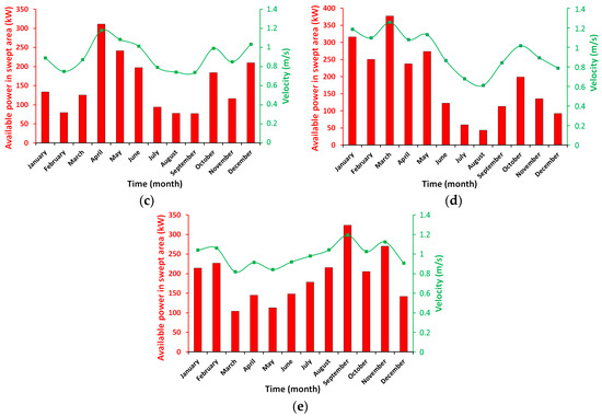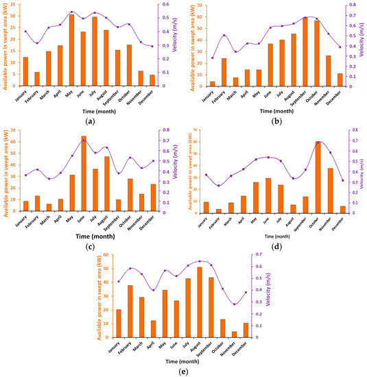 Tidal energy resource in the south coast of Atlantic. (a) 2010; (b) 2011; (c) 2012; (d) 2013; (e) 2014.