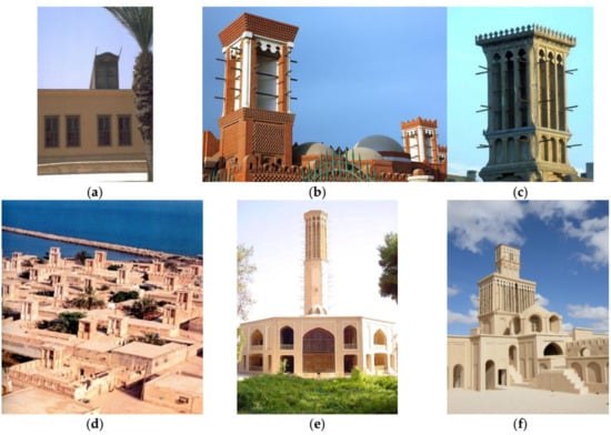 - Bahadori, M.N.; Dehghani-Sanij, A.R. Wind Towers: Architecture, Climate and Sustainability; Sayigh, A.A.M., Ed.; Springer: Basel, Switzerland, 2014. [Google Scholar]