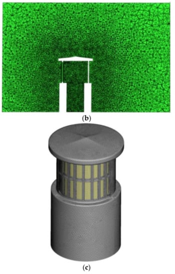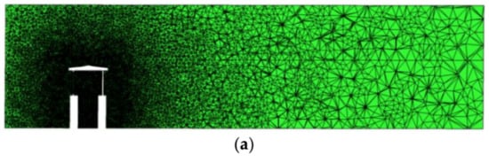 To attain an acceptable simulation accuracy, the computational domain is divided into three portions: an upstream, a downstream, and a wind tower region. In the upstream and downstream directions, the boundaries are extended to prevent reverse flow in the outlet. Taking H as the height of the wind tower, upstream and downstream regions have the dimensions of 3.5H (length) × 3H (height) × 6H (width) and 10.5H × 3H × 6H, respectively (Figure 8). The blockage ratio is defined as the cross-sectional area of the tower in the domain area. This parameter must be small enough to avoid the blockage effect, and we determine that the blockage ratio is around 3.3% which is considered acceptable for the simulations [43,44].