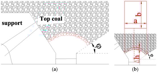 Figure 4. Upper arch. (a) Upper coal only arch; (b) Upper coal-gangue arch.