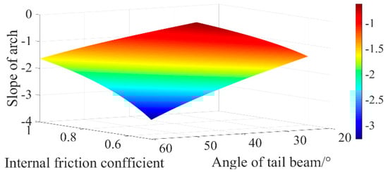The relationship among slope of arch, internal friction confficient and angle of tail beam.