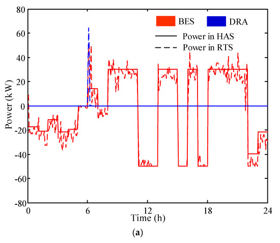 There exist two steps in the control strategy of RTS. The first step is to calculate the initial power references of the CDG, BES, DRA, and exchanged power, on the basis of the results from the HAS. The second step is to adjust the power references to absorb the imbalanced power. Taking the interval (t, m, n) as the instance, the detailed steps are illustrated as below. Notice that, (t, m, n) represent the n-th 5-min time interval in the m-th 15-min time interval at hour t.