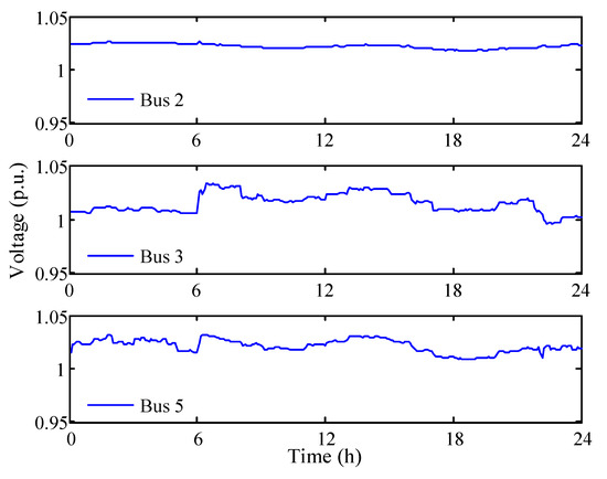 Constraint (25) represents the limits of power flow through each branch. Also, Constraint (26) requires the voltage at each bus should be within the allowable region.