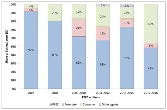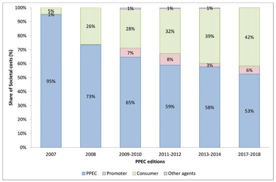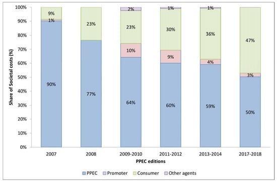 Share of societal costs of the selected tangible measures for the Households consumption segment, in each PPEC edition [19,20,21,22,23,24,25,26].