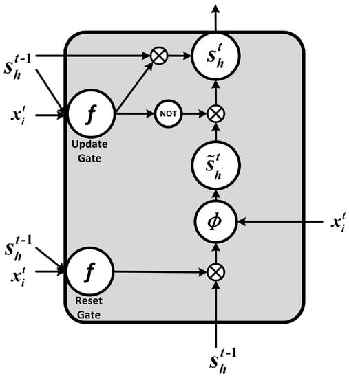 The feedforward deduction process for GRU units is shown in Figure 2 and given by Equations (4)–(10).