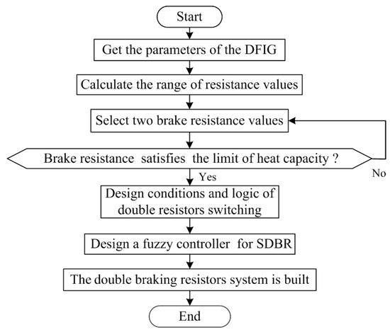 In this paper, a double resistors braking method based on fuzzy control is proposed, which is based on the system characteristics of a DFIG at different voltage drop depths. The double resistance switching mode of an SDBR is also designed. The series resistance values are selected by the open circuit voltage and the resistor’s heat capacity. In order to improve the LVRT performance of the DFIG, the fuzzy control mode is used to realize double resistance switching.