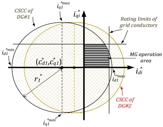 CSCC for each DG unit of the MG: typical CSCC and the limits of currents along with the overlap of CSCCs for different DG units and reference current area of MG.