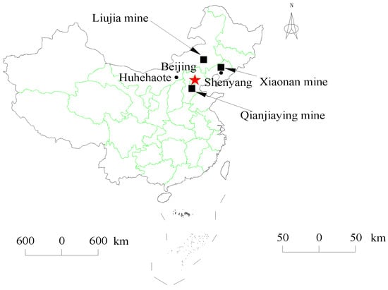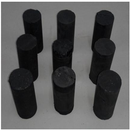 The specimens were collected from three different areas: the Qian Jiaying mine in Kailuan area, the Xiaonan mine in the Tiefa area, and the Liujia mine in the Pingzhuang area, China (Figure 5). Samples were drilled parallel to the beddings. The specimens with a diameter of 50 mm and length of 100 mm were included in the permeability experiment according to the standards of the International Society of Rock Mechanics (Figure 6), and grinding 50 g of pulverized coal with diameters between 0.2 mm and 0.3 mm was used in the low temperature nitrogen adsorption experiment (Figure 7). To guarantee the relative consistency and properties of the specimens, the specimens in each group were acquired from the same coal as much as possible. The mineral composition analysis was carried out by X-ray (Scienscope, Chino, CA, USA). The results showed that the mineral composition of coal specimens in the three mining areas mainly consisted of carbonates and silicates, including calcite, dolomite, and silica (Table 1).