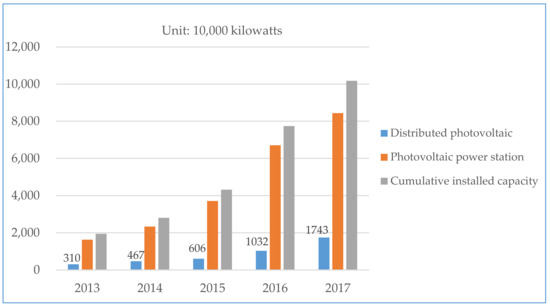 China’s new round of power system reform is focused on energy structural problems, that is, transformation and upgrading. Thus, there is an urgent need to accelerate the construction of new energy power. As a kind of new energy power generation, PV power generation has clean, renewable, energy conservation and emissions reduction advantages and huge potential for development. It is suitable for modern social concept and has received widespread attention in the world today. Figure 1 shows the rapid increase of installed PV power generation capacity in China from 2013 to 2017. In particular, in the first half of 2017, China’s newly installed PV power generation capacity was 24.4 million kilowatts, with an increase of 9% year-on-year. The National Energy Administration has adopted a series of measures to promote the implementation of the “leadership” plan for PV power generation and the “leadership base” construction plan. The local government and power grids regard DPV power generation as an assessment indicator for the performance. In addition, with a series of policies such as financial subsidies, acquisition of electricity security, and administrative licensing exemptions, more and more companies have joined the DPV investment. Therefore, how the government should control investment and review projects, especially how investors choose appropriate DPV power generation projects to invest has become a hot issue worth exploring.