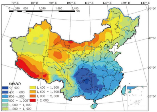 Distribution of solar energy resources in China. Source: China Renewable Energy Society.