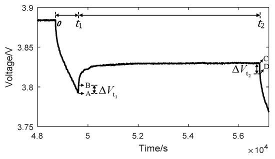 During each rest period of the battery, the terminal voltage response can be expressed using Equation (11):