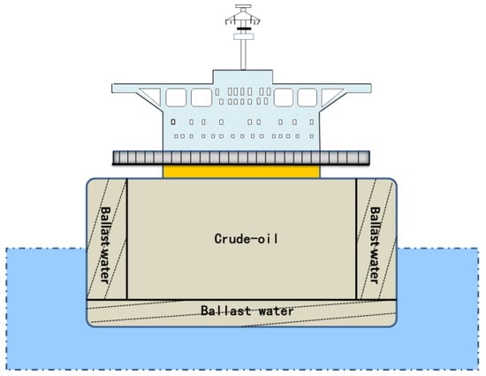 As indicated in Figure 3, all the boundaries are subjected to the third-type boundary condition. The temperature of sea water is set to be 290.4 K, which is the annual average temperature of sea water; the temperature of air is chosen to be 293 K, which is also the annual average temperature. The initial temperature of the crude oil in the cabin is set at 323 K. It is provided in [] that the forced heat transfer coefficient of water is 1000–1500 W/(m2·K), and that of air is 20–100 W/(m2·K). In this paper, the forced heat transfer coefficient of water is 1250 W/(m2·K), and that of air is 50 W/(m2·K). In conclusion, the detailed information about the boundary conditions is provided in Table 1.
