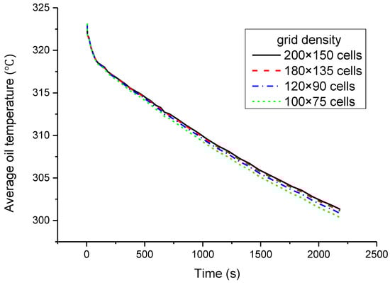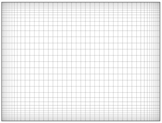 The computational domain is mapped by structured quadrilateral mesh generated by ICEM (The Integrated Computer Engineering and Manufacturing code) combined in ANSYSY FLUENT 15.0 [], and the grid system is sketched in Figure 4. The rational grid density, which is 200 × 150, is determined after grid independent testing shown in Figure 5.