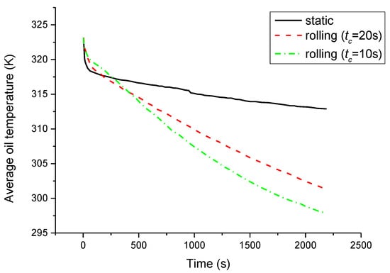 Figure 14 compares the average temperature changes versus time in the cargo in Case 1 (static), Case 2 () and Case 3 (). The temperature drop is obviously enhanced by the oscillating, and the larger the oscillating rate (i.e., the smaller the time cycle), the greater the temperature drop rate. This is because temperature drop of the crude oil under the stationary condition mainly depends on the natural convection, but, in oscillating condition, it depends on mixed convection (natural convection + forced convection), which enhances the heat transfer effect.