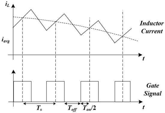 The steady state inductor current and gate signal during DCM are shown in Figure 8. In this mode of operation, the average inductor current is different to the sensed inductor current. Furthermore, the sum of the rise time and fall time does not correspond to the value of Ts. Hence, the inductor current is improperly regulated with respect to the applied reference current when the current control algorithm developed for CCM is applied in DCM. An appropriate optimal duty cycle prediction method is thus required for DCM.
