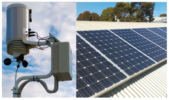 One of the most critical steps in the forecasting system is providing reliable and trustable data collected on-site. Poor data collection and inaccuracy in the meteorological and PV power undoubtedly lead to inaccurate and unreliable forecasting outputs, even with a sophisticated forecasting system. As highlighted above, one of the key points of this research includes the local weather monitoring station, which collects data from the same site where the actual PV system is located. This feature contributes to the increased accuracy of the proposed DESPO forecasting algorithm relative to that proposed in the literature [15]. Moreover, the output of the PV system is significantly affected by irradiance intensity and direction, temperature, and shading conditions on-site. Therefore, the difference in locations for the imported weather and collected historical PV power data causes further inaccuracy in the forecasting system. The weather station in this project is installed close to the PV system on the rooftop of the School of Engineering, Deakin University (Victoria, Australia).