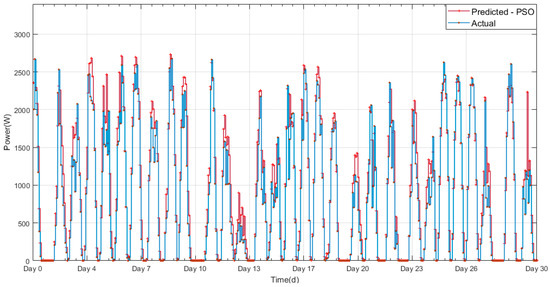 PSO-forecasted and actual values of PV output power.